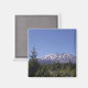 Este ímã mostra uma fotografia na Rua do Monte Helens num dia ensolarado para que possam ver onde o topo da montanha explodiu na erupção vulcânica de 1980. Linda imagem do vulcão com pinheiros verdes e céu azul.