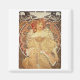 Um poster Mucha vintage de 1890. Alphonse Mucha é o mais conhecido artista de Art Nouveau do seu tempo. Esta design mostra uma mulher vermelha sentada sem texto. A design tem um aspecto levemente angustiado.