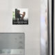 Esta foto de script moderna com ímã apresenta sua foto especial sobreposta com uma mudança de data em script acima de seus nomes e mensagem em tipografia branca.