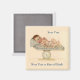 Bebê adorável com sorrisos grandes está deitado em balanças cobertas de cobertor. Cor azul suave e cor de pêssego. Personalizar para anunciar o nascimento ou entregar como aviso de nascimento. Mais presentes personalizáveis com este design na minha galeria.
