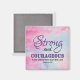 Lembrete inspiracional e motivacional para a mulher cristã de hoje. Cores de rosa e azul com tipografia roxa e sombra negra. A mensagem diz FORTE E CORAJOSA É A MULHER QUE MERECE O SENHOR, que é baseada em Joshua 1:9. Presente de excelente para aniversários, Dias de as mães, Dias de os pais, enchedores de natal, presentes na igreja, bolsas de favores, grupos religiosos, seminários, etc. Parte da coleção FEARLESS de Designs Bereanos.