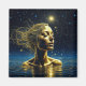 Arte de IA retratando uma mulher bonita imersa na água sob as estrelas em profunda reflexão. Surreal pacífico e sereno; arte de fantasia mística. Paz, serenidade, amor e harmonia.