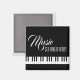 Esta design é para amantes da música jovens e velhos. Este ímã quadrado apresenta um design simples e elegante com um teclado de piano. Acima do teclado, o texto diz "Música é uma coisa de beleza". O fundo preto pode ser personalizado.