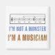 A alfabetização musical é importante! Este design apresenta uma clave tripla com a letra do raio: "Gosto de comer" e "Gosto de gatinhos" se lida corretamente. Se não, as pessoas pensarão que você é um monstro. Faz um presente de excelente para professores de música, músicos, membros do coro, cantores e qualquer um que goste de uma boa piada musical. "Eu não sou um Monstro, sou um Músico" aparece em texto azul e laranja.