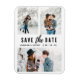 espalhe as notícias de excelente do seu casamento com este elegante moderno salve o cartão de data. com espaço para suas fotos escolhidas e texto editável para adicionar seus detalhes.