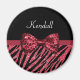 Sua adolescente se sentirá imersa no luxo feminino com este ímã de impressão zebra vermelho e preto brilhante com uma fita cintilante de sequência amarrada em um arco luxo. Personalize este design de moda de impressão de animais brilhantes e reluzentes adicionando seu nome. Imagem impressa plana, não brilho real ou fita.