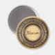 Magneta redonda com a imagem de uma bela madeira e estrutura dourada sobre ouro escovado e a saudação personalizável hindu Namaste, que significa: "Eu honro o lugar dentro de vocês onde reside o Universo inteiro; Eu honro o lugar dentro de vocês de amor, luz, verdade, paz; Eu honro o lugar dentro de vocês, onde, quando você está naquele lugar em você, e eu estou naquele lugar em mim, há apenas um de nós. Veja toda a coleção de ímãs iluminantes nos TOUCHES ESPECIAIS | Seção Favoritos para festas.