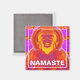 Um ímã com um legal sentimento vibrante e design místico buda. Apresenta tons cor de laranja e rosa com uma mensagem pacífica de "Namaste". Faz um presente excelente para si mesmo ou comprar para alguém que você conhece que ama possuir este ímã de tendências.
