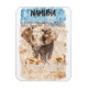 Foto do Magnet na moda com a cor d'água, apresentando a paisagem e a vida selvagem únicas do país africano com um elefante. Comprar agora como uma ideia de souvenir viagem e safari