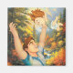 Uma cena alegre se desenvolve enquanto um homem sorridente levanta um bebê encantado contra um pano de fundo de uma vibrante floresta de outono com um riacho em cascata. A luz solar filtra através das árvores, destacando o calor e a felicidade do momento. Digital Art Photoshop CS5
