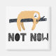 "Agora não" em letras decoradas a negrito + uma preguiça de desenho animado dozando em um galho. Por que ficar grande se você pode ir para casa? Sloth sabe o que é. Seja preguiçoso, cansado, ou como dormir frequentemente - as pessoas podem voltar mais tarde.