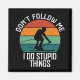 Nossa design de vintage "Não me siga Eu faço coisas estúpidas" não é apenas roupa; é uma declaração de espírito de esqui destemido. Quer você seja um esquiador experiente ou batendo nas encostas pela primeira vez, este design funesto é seu crachá de aventura. Vista-o com orgulho e humor, e junte-se à comunidade de entusiastas do esqui.