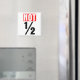 Um design que expressa a expressão inglesa britânica "not half" em palavras e uma fração tradicional.
