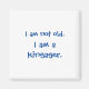 Ímã quadrado lê "EU NÃO SOU VELHO. EU SOU UM KINGAGER." Ímã engraçado para sua geladeira ou em qualquer lugar.. Letras azuis escuras podem ser alteradas para qualquer cor desejada usando o recurso "editar design". Você pode mudar a fonte da mesma forma. Ótimo para um riso, a qualquer momento.