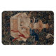 depicting the beautiful Narcissus, a hunter from Thespiae in Boeotia, (present day Karaburun, İzmir, Türkiye) gazing lovingly/obsessively at his own reflection in the waters of a stone fountain, surrounded by an ornate background of animals, birds, and flowers