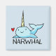 Este Magneta Narwhal Square parecerá excelente qualquer lugar que você escolher colocá-lo para mostrar seu amor pelo unicórnio do oceano.