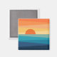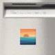 Abstrato ilustração do nascer do sol colorido (amarelo, laranja, azul, turquesa) pelo mar com linhas diagonais e decoração solar