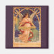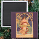 Ilustração antiga religiosa da época natalina vitoriana com uma imagem de um anjo flutuante lendo a Bíblia. Essa senhora angelical tem asas lindas, cabelos longos e escuros e um robe fluído; ela está sob um arco decorativo enquanto lê um livro.