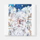 Uma figura mística barbuda é composta de papel intricadamente cortado, aparecendo em meio a uma vila nevada colocada contra o terreno montanhoso. A face serena é cercada por elementos detalhados do inverno, incluindo flocos de neve e telhados de fosco. Digital Art Photoshop CS5
