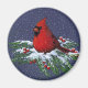 (vários produtos selecionados) Um Cardinal vermelho brilhante senta-se em ramificações de pínus nevados, picadas com bagas vermelhas suculentas, à medida que a neve cai suavemente contra um fundo azul escuro. Trabalho de arte criado com lápis de cor.