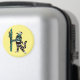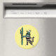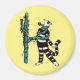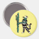 Íman de cacto de Natal com um desenho de tinta digital de um adorável personagem de gatinho com uma flor na cabeça quase sufocada por um cacto com as mesmas flores e bolas de Natal na garland penduradas nela.