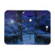 Uma noite de inverno, olhando por cima de um portão flanqueado por duas árvores em uma cobertura de neve entre colinas rochosas, cheias de pequenas fazendas, sebes e muros de pedra. Um brilho quente brilha de muitas janelas, luzes de Natal brilham sobre árvores e cercas, e uma estrela de Natal vigia do telhado de uma casa de manor, tudo sob os raios de uma lua de cheio.