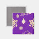 Uma design de decoração colorida de Natal, com flocos de neve, árvores de Natal e espirais espalhados por um fundo roxo festivo.