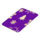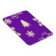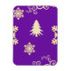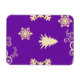 Uma design de decoração colorida de Natal, com flocos de neve, árvores de Natal e espirais espalhados por um fundo roxo festivo.