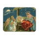 Lovely vintage illustration of baby Jesus born in Bethlehem, surrounded by his mother Mary and two little angel praying.