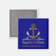 Marinho de âncora náutica personalizada, azul de casamento, favor de ímã - O logotipo de âncora metálica falsa é centrado com nomes personalizados de casal de recem casados em letras douradas com uma sombra de queda. Na base está o nome do navio de cruzeiro e a data. Em um fundo azul marinho sólido, que pode ser mudado para a cor favorita ou para complementar o esquema de cor do seu casamento. Crie uma lembrança comemorativa do casamento para os convidados da família e do casamento. Bela lembrança de seu cruzeiro de casamento. Favoritos elegantes, náuticos marinhos para casamentos de destino, casamentos temáticos náuticos, casamentos de praia, casamentos de cruzeiro, etc. Temos mais ímanes de casamento no nosso compro Zazzle.com/angela65.