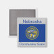Uma imagem autêntica de qualidade superior da bandeira de Nebraska, que é definida entre o nome do Estado e o apelido sobre um fundo de cor de bandeira.