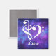 Os símbolos de clave e clave de terror combinam-se para formar um coração musical, com uma vibrante nebulosa azul rosa, roxa e turquesa como fundo. Fácil maneira para músico, compositor, artista, cantor, baixista, compositor expressar amor pela música. O ímã personalizado de amante de galáxias e músicas é uma ideia perfeita para um professor de música, um tocador de orquestra, um músico, DJ, um coro, um tocador de instrumentos de cordas, ou um músico, incluindo banjo, baixo, violoncelo, harp, guitarra, piano, ukulele, viola, violino. Personalizar com um nome, instrumento musical ou qualquer outro texto. Design: Dimensione e posicione o texto para flutuar agradavelmente no espaço abaixo da imagem cardíaca.