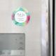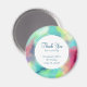 Obrigado de aniversário, você tem ímanes com um design legal e na moda abstrato. As aquarelas se misturam e se misturam para criar a ilusão de uma imagem espacial. Verde com espirais de púrpura, amarela e vermelho-claro misturados com uma mistura de pontos brancos e estrelas. Uma criação artística elegante.