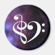 Símbolos de clivagem de têmpera e bass são combinados para formar um coração musical, com uma vibrante nebulosa de névoa roxa como fundo. Fácil maneira para músico, compositor, artista, cantor, baixista, compositor expressar amor pela música. Galáxia e ímã para amantes de música é uma ideia perfeita para um professor de música, um tocador de orquestra, um estudante de música, DJ, membro do coro, tocador de instrumentos de cordas, ou músico, incluindo banjo, baixo, violoncelo, violão, violão, piano, ukulele, viola!