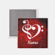 Os símbolos de clave e clave-baixo são combinados para formar um coração musical, com uma vibrante nebulosa vermelha de rosetas como fundo. Fácil maneira para músico, compositor, artista, cantor, baixista, compositor expressar amor pela música. O ímã personalizado de amante de galáxias e músicas é uma ideia perfeita para um professor de música, um tocador de orquestra, um músico, DJ, um coro, um tocador de instrumentos de cordas, ou um músico, incluindo banjo, baixo, violoncelo, harp, guitarra, piano, ukulele, viola, violino. Personalizar com um nome, instrumento musical ou qualquer outro texto. Design: Dimensione e posicione o texto para flutuar agradavelmente no espaço abaixo da imagem cardíaca.