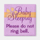 Quando você finalmente conseguir que seu pequeno durma, alguém vem e toca a campainha...e acordar seu bebê! Este pequeno e bonito sinal magnético permitirá que os visitantes e as pessoas saibam que há um bebê dormindo e que seria apreciado se não tocasse o sino. É um ímã, não um sinal permanente, por isso só se pode colocá-lo na porta da frente quando necessário. Este seria um presente de chá de fraldas único!