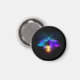 Voz mecânica, antiga, com lâmpada e asas finas brilha cor de laranja, roxo, turquesa sobre fundo preto. Estilo Steampunk.