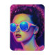 Esta trabalho de arte digital eletrificante apresenta uma mulher inspirada no retrorreflector em óculos escuros brilhantes refletindo uma galáxia hipnotizante de estrelas. Com tons radiantes de rosa, azul e violeta, este design de vidro cósmico combina vibrações futuristas com elegância vintage — perfeito para impressões destacáveis, adesivos, capas de telefone ou Redbubble roupa on. Um texto ousado para amantes do espaço, estilo e pop surreal.