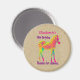 Um obrigado Festa de aniversário, seu ímã. Personalizado e facilmente personalizado para se adequar a outros eventos. Projetado com uma ilustração psíquica divertida, de estilo 60, de uma zebra bebê em neon colorido de amarelo brilhante, rosa quente e verde-menta. Selvagem e diversão com um talento artístico criativo. Defina um fundo de papel de artesanato falso.