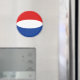 A bandeira dos Países Baixos foi cuidadosamente hasteada na forma circular deste ímã. Uma forma decorativa de promover a cultura holandesa.