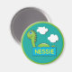 Um adorável monstro verde de beleza com escalas verdes nas costas, com o nome Nessie.