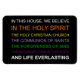 Nesta casa, acreditamos no espírito sagrado, na igreja cristã sagrada, na comunhão de santos, no perdão dos pecados, na ressurreição do corpo e na vida eterna. Viva sua fé alto.