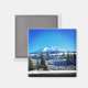 Um brilhante e ensolarado dia de inverno passando pelo Monte Shasta, Califórnia. Linda neve branca cobrindo a montanha e árvores abaixo.