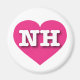 Este ímã apresenta um coração cor-de-rosa-quente vibrante contendo as letras maiúsculas, brancas e em negrito NH, a abreviação oficial de New Hampshire, o estado granito.