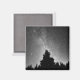 Esta foto em preto e branco apresenta um céu noturno sobre a floresta.
