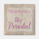 Uma frase que rapidamente se tornou um grito de guerra para o movimento dos direitos das mulheres, assim como para os atuais movimentos políticos de direitos civis em geral. A força para persistir continuará a ganhar o dia, a tempo, em todos os obstáculos.