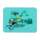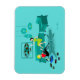 Parece que vai ser uma época divertida com esta noite de gatinha das garotas retrô em um ímã flexível. A design de arte minimalista ao estilo de 1960 apresenta duas mulheres com cocktails cor-de-rosa numa sala de estar moderna, aqua e turquesa de meio século profundo. Estas senhoras certamente sabem como relaxar. A beleza assada pelo corvo na flerta, vestido verde está a saltar no sofá atômico. Sua companheira loira está sentada em um tapete de impressão zebra, vestindo um topo vermelho e apertado, calças pretas. Os aparelhos de pinagem, gravador de vinil e lanterna de papel estabelecem o clima. Uma era espacial enquadrada, impressão de arte do globo pendura sobre o sofá-mod.