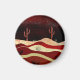 Cena de paisagem abstrato de um deserto com saguaro cactus, escova esfregada, colinas e estrelas em tons de vermelho, creme, bege e texturas ousadas.