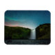 Esta foto apresenta um belo Skógafoss à noite com estrelas e luzes nortes.