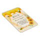 Elegante, divertido, chá de panela de ímã de verão. Um fundo amarelo com um padrão alveolado. Com uma falsa estrutura geométrica de ouro e mel doce pingando. Decorado com girassóis amarelos e laranja e abelhas-desabrochadas felizes. Com o texto: Bride to Bee o nome da noiva na frente, escrito com um moderno estilo escrito à mão. Letras negras. Pode ser usado como um lembrete de data para os convidados. Traseira: padrão amarelo de mel, design postal. Dica: Se você não quiser que pareça um cartão postal, clique em personalizar, vá para o verso e remova o divisor e o carimbo de posto.